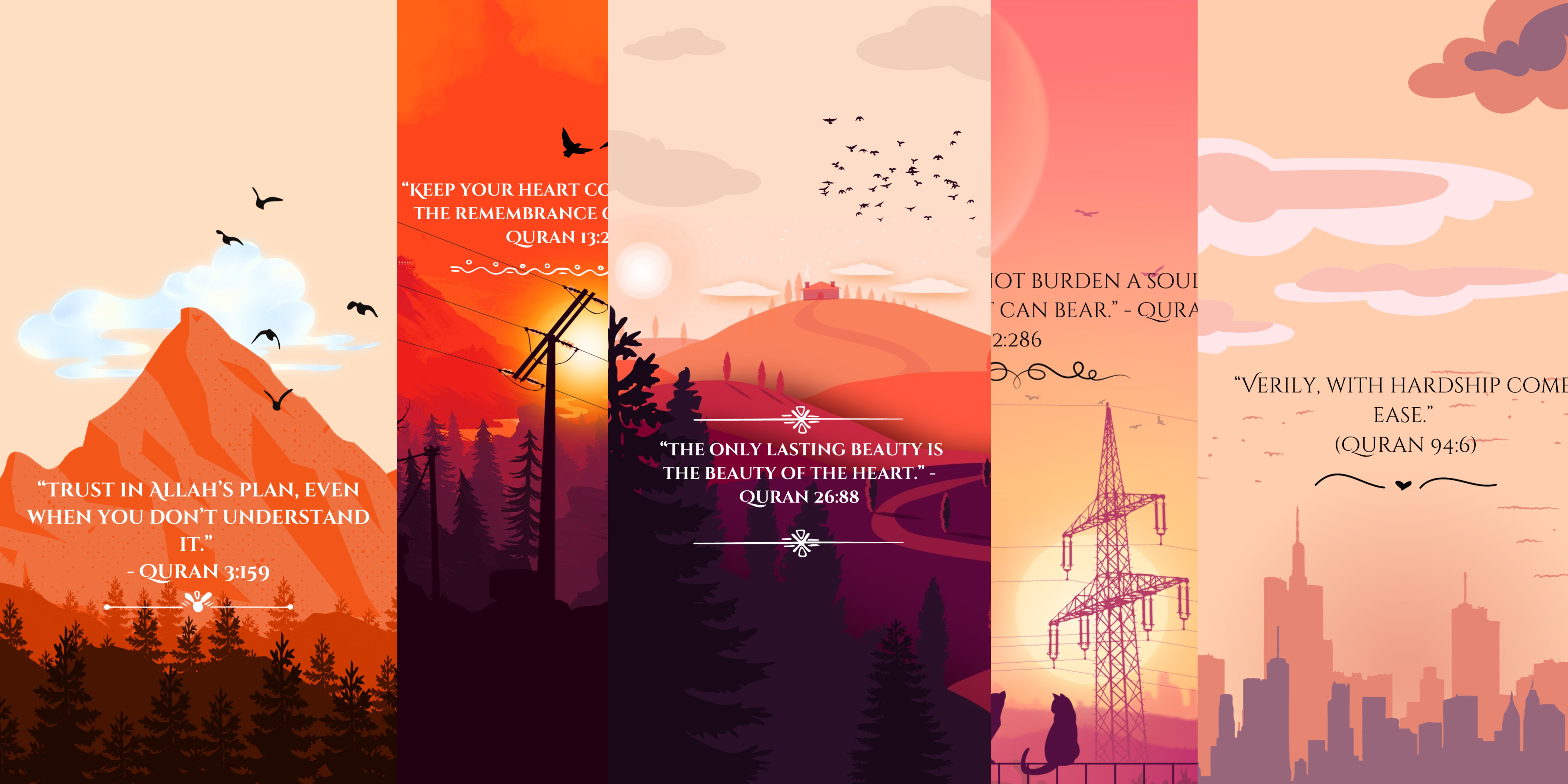 "Faith" is a collection of wallpapers that serve as a visual reminder of the unwavering trust and devotion to Allah. With serene and inspiring designs, these wallpapers symbolize the importance of maintaining faith in Allah at all times, filling your surroundings with a sense of peace and spirituality.